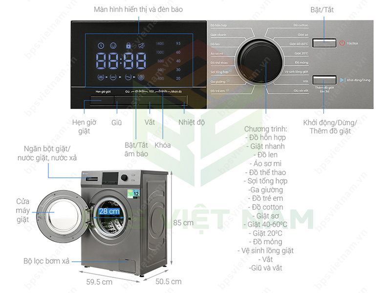 | Loại máy giặt: | Máy giặt cửa ngang |