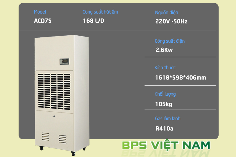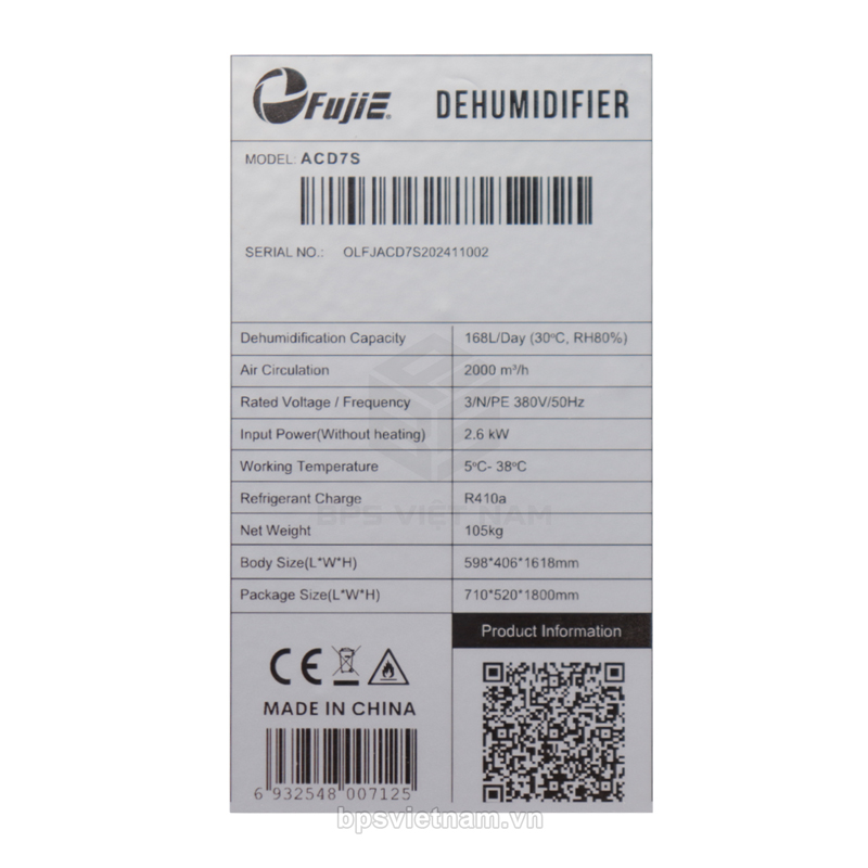 BPS Việt Nam hiện là nhà phân phối chính hãng các sản phẩm máy hút ẩm thương hiệu Fujie nổi tiếng tại thị trường Việt Nam. Không chỉ riêng Máy hút ẩm công nghiệp FUJIE ACD7S, BPS Việt Nam còn cung cấp nhiều dòng máy hút ẩm với đa dạng mẫu mã, đủ mọi công suất, đáp ứng mọi nhu cầu sử dụng của quý khách hàng.