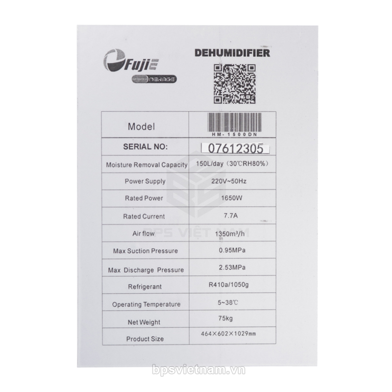 - Máy hút ẩm công nghiệp Fujie HM-1500DN được sản xuất và lăp ráp tại Trung Quốc.