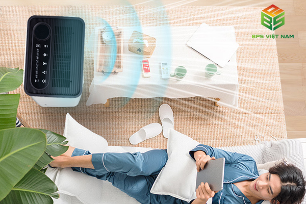 Máy lọc không khí: Công dụng lọc sạch bụi bẩn, vi khuẩn, mùi hôi trong không khí, giúp không khí trở nên trong lành hơn.