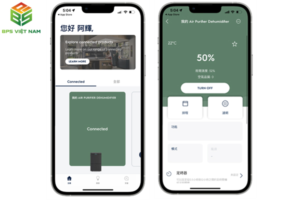- Hỗ trợ kết nối App điều khiển trên điện thoại, kiểm soát và theo dõi chế độ hoạt động của máy.