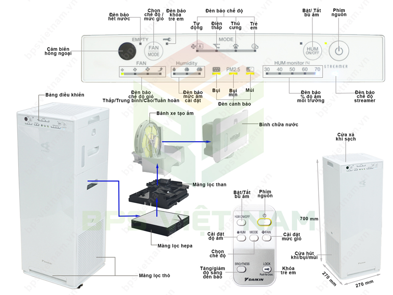 | Kích thước (Rộng x Sâu x Cao): | 270 x 270 x 700 mm |