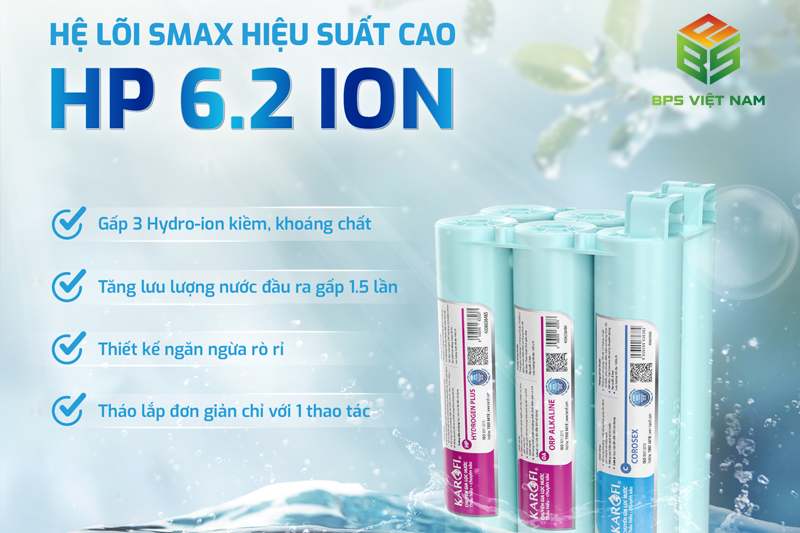 Bên cạnh việc loại bỏ triệt để các tạp chất trong nước, thì máy lọc nước Karofi KAQ-U95 còn bổ sung các khoáng chất, hydrogen, bằng công nghệ Nano Smax với 6 lõi lọc chức năng đúc nguyên khối, giúp tăng lưu lượng nước đầu ra, giảm thiểu vấn đề rò rỉ và tái nhiễm khuẩn cho nước, tiết kiệm chi phí và thời gian thay bộ lõi chức năng, dễ dàng thay thế tại nhà. Tái tạo nước tính khiết với lượng khoáng chất cao nhất: