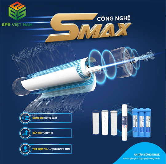 Công nghệ SMAX của Karofi là bước cải tiến nổi bật giúp tăng hiệu suất lọc nước, loại bỏ đến 99,9% vi khuẩn, tạp chất, kim loại nặng và các chất độc hại trong nước sinh hoạt. Các lõi lọc SMAX có thiết kế nén đa lớp, giúp tiết kiệm nước thải và tăng tốc độ lọc.